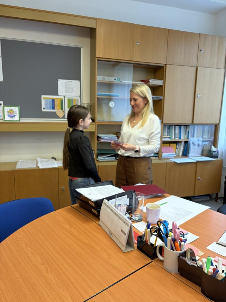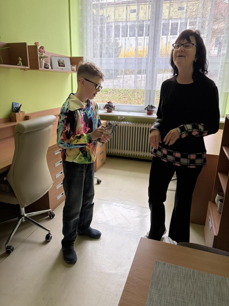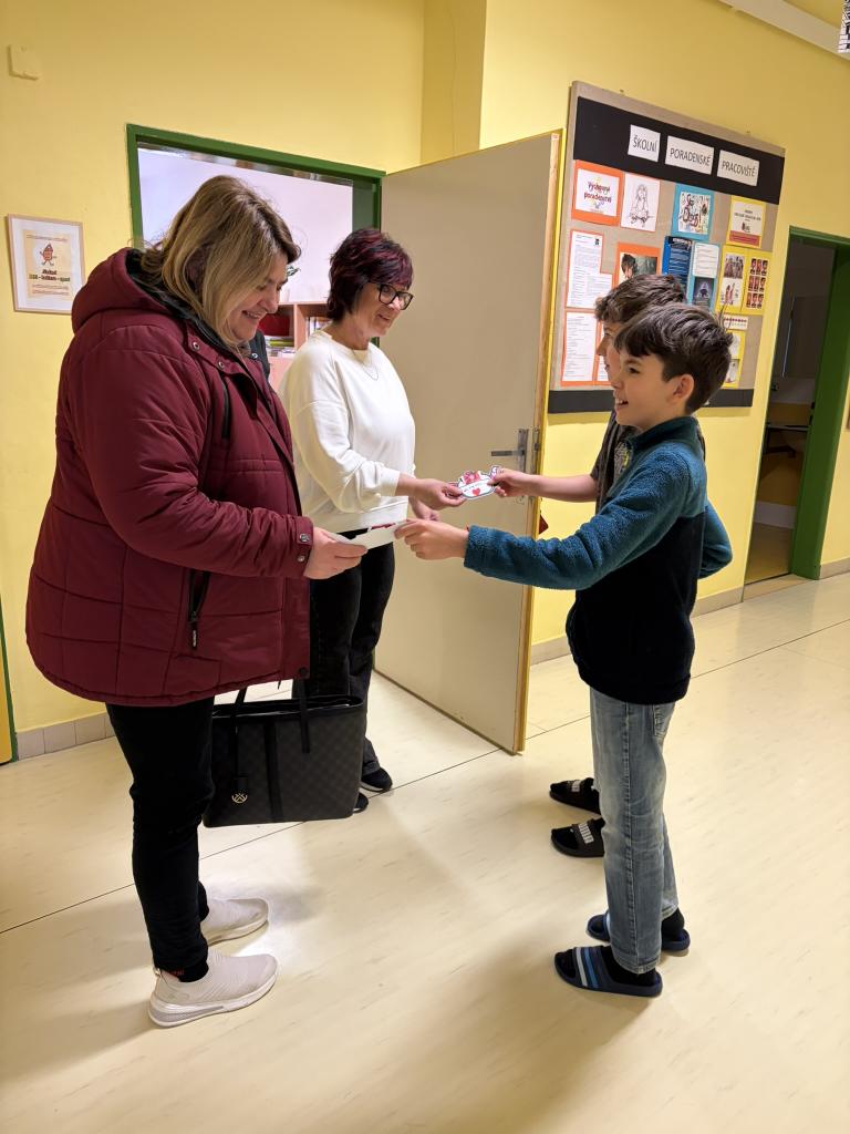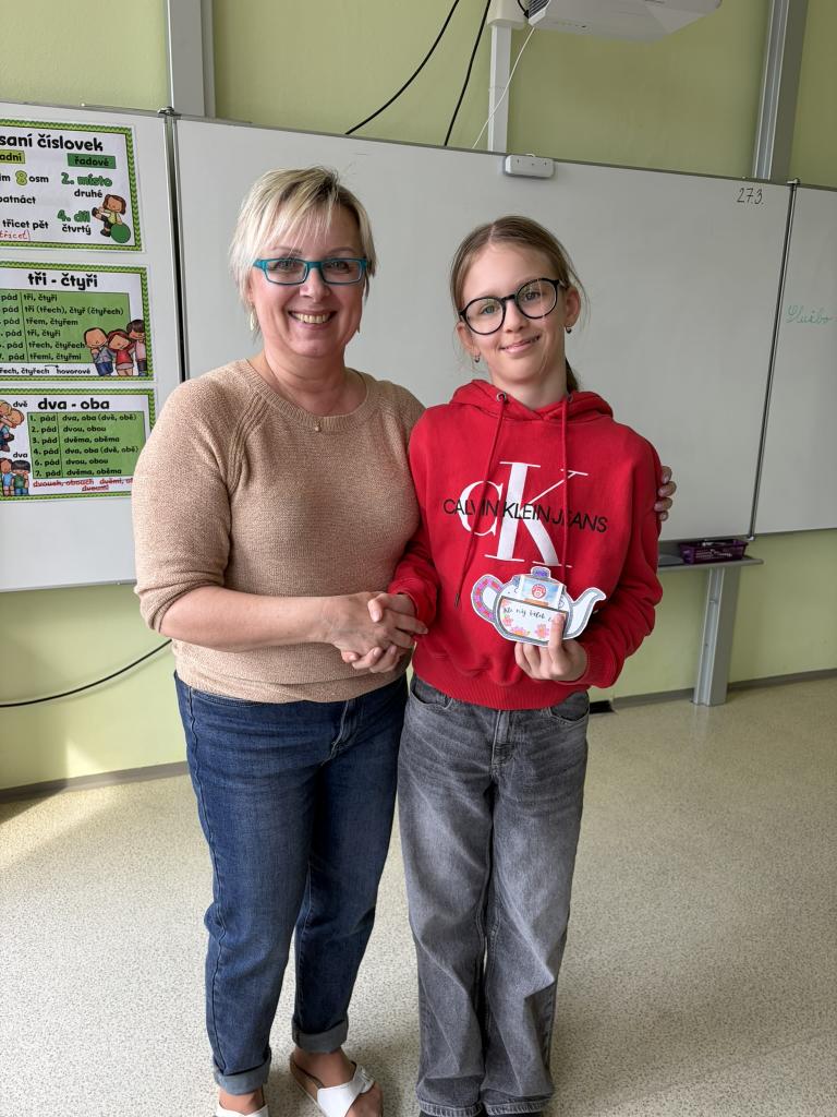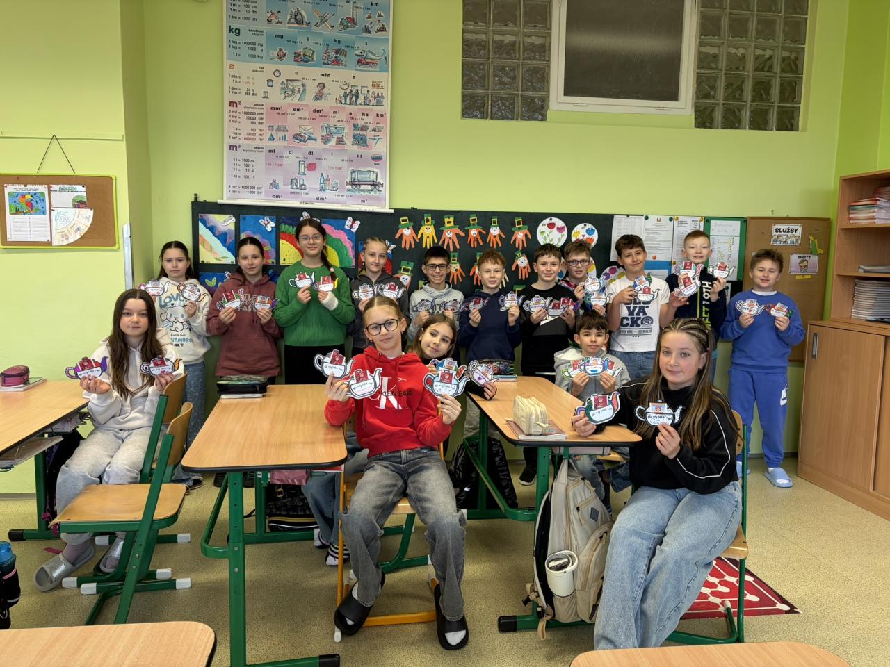 Ke Dni učitelů děti vyrobily v třídnických hodinách pro každého vyučujícího drobný dárek – papírovou konvičku s čajem jako poděkování a s velkou radostí konvičky roznášely.